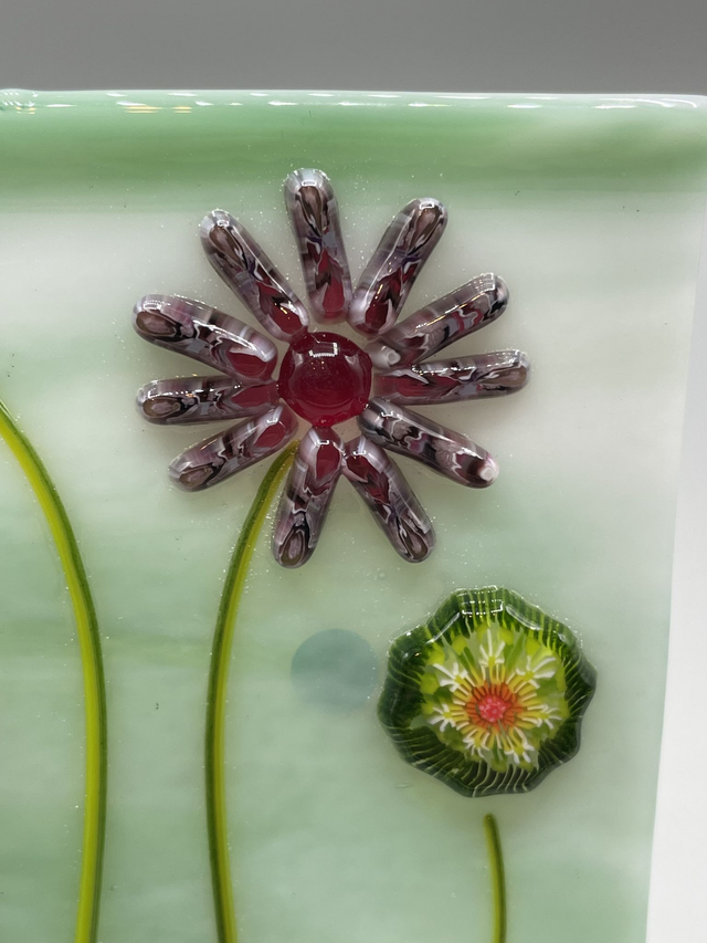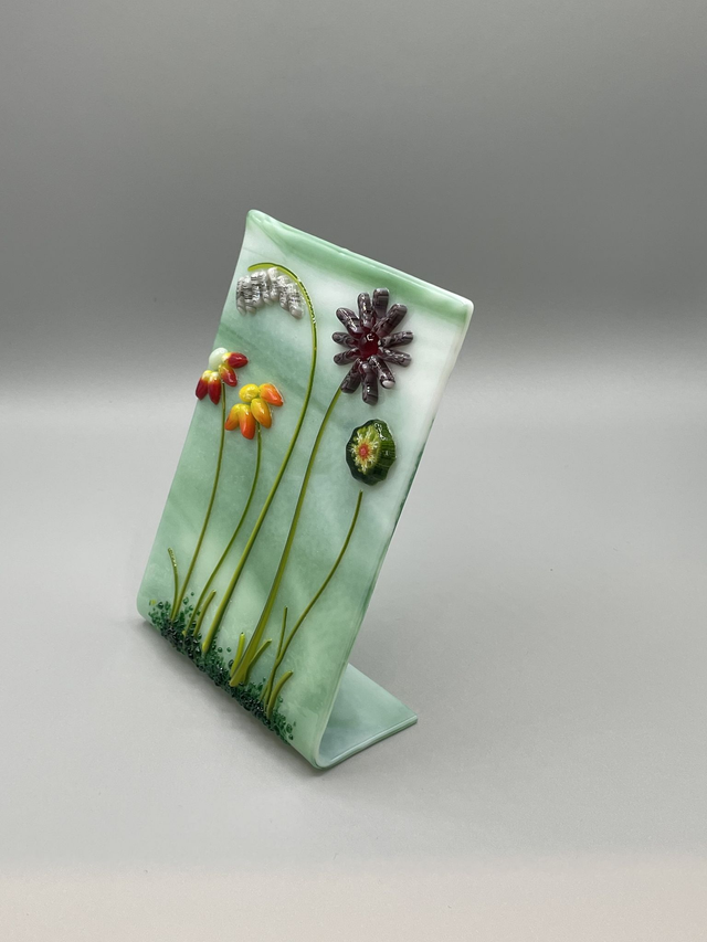 Freestanding fused glass floral scene